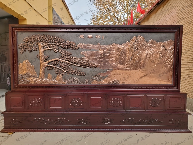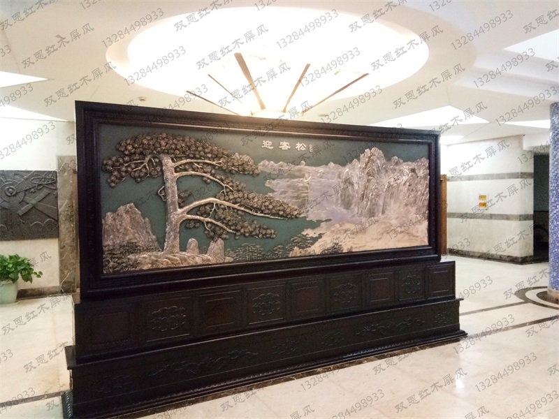上海市某学校4.2米×2.38米迎客松、沁园春.雪紫铜浮雕屏风